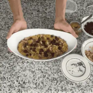 - Transfer the mixture to your serving bowl. Use the back of a spoon to create swirls on top. These ridges catch the honey and toppings nicely.