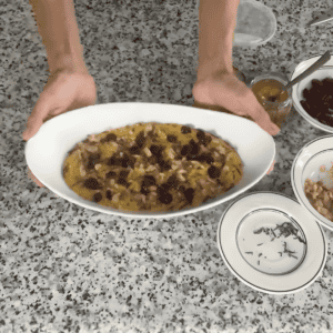 Transfer the mixture to your serving bowl. Use the back of a spoon to create swirls on top. These ridges catch the honey and toppings nicely.